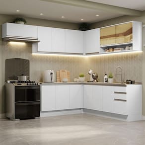 Um móvel com design moderno e sofisticado, perfeito para ambientes que possuem muito espaço disponível. Confira este Armário de Cozinha de Canto da linha Glamy da Madesa.