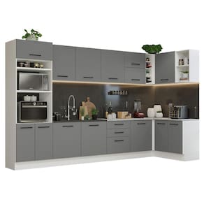O acabamento da estrutura é branco e o das portas e frentes é cinza. É feito em Pintura Poliéster ecológica com sete camadas, que destaca a tonalidade e protege o móvel.