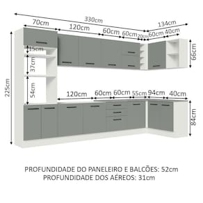 - 52 cm de profundidade nos balcões e na torre e 31 cm nos aéreos