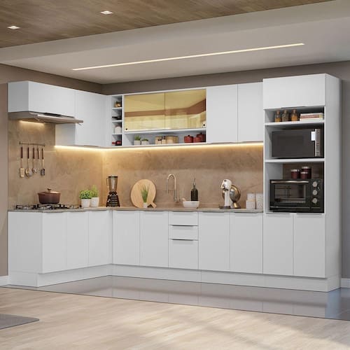 O Armário de Cozinha Completa de Canto Stella, da Madesa, é uma opção espaçosa e moderna, ideal para quem busca um móvel funcional e elegante.
