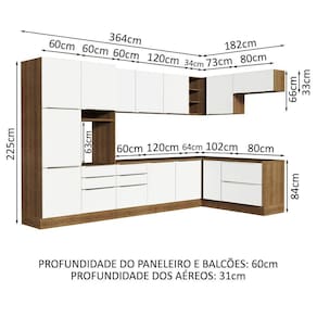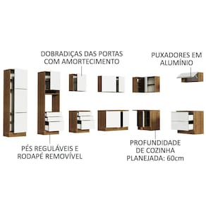 - 60 cm nos módulos inferiores e 31 cm nos aéreos