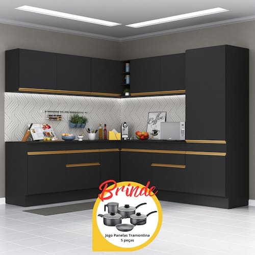 A Cozinha Completa de Canto com Rodapé Veneza Multimóveis MP2101 com Armário e Balcão tem um excelente custo benefício e um amplo espaço interno. Produzida em MDP com acabamento acetinado (cerca de 20% de brilho), que garante maior durabilidade e resistência, possui corrediças metálicas (mais leveza no manuseio), rodapés, que deixam o ambiente mais estiloso, puxadores em ABS e tampo em MDP 15mm com pintura de alta resistência. Os módulos de canto podem ser montados dos dois lados (esquerdo ou direito), conforme a sua preferência. Esta cozinha conta, ainda, com balcão com tampo removível (compatível com pia de 120 cm), com 1 gaveta e 2 portas. Os módulos são individuais e você pode montar da maneira que se adaptar melhor ao seu ambiente. Para deixar sua cozinha mais bonita e organizada, possui paneleiro e compartimento especial para utensílios mais altos.
