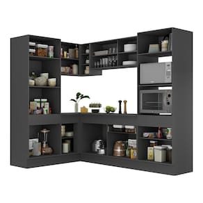 Armário De Cozinha Completa De Canto Com Rodapé Veneza Multimóveis V2084 Preto Preto