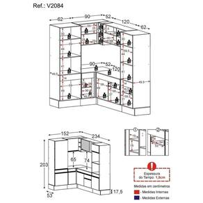 O Armário de Cozinha Completa de Canto com Rodapé Veneza Multimóveis V2084 tem um excelente custo benefício e um amplo espaço interno. Produzido em MDP com acabamento acetinado (cerca de 20% de brilho), que garante maior durabilidade e resistência, possui corrediças metálicas (mais leveza no manuseio), rodapés, que deixam o ambiente mais estiloso, puxadores em ABS e tampo em MDP 15mm com pintura de alta resistência. Os módulos de canto podem ser montados dos dois lados (esquerdo ou direito), conforme a sua preferência. Esta cozinha conta, ainda, com balcão com tampo removível (compatível com pia de 120 cm), com 1 gaveta e 2 portas. Os módulos são individuais e você pode montar da maneira que se adaptar melhor ao seu ambiente. Para deixar sua cozinha mais bonita e organizada, possui módulo para forno e microndas, além de vidro reflecta e compartimento especial para utensílios mais altos.Conteúdo da Embalagem:1 (um) paneleiro 62cm1 (um) armário aéreo de canto 90cm1 (um) armário aéreo com portas de vidro 120cm1 (um) balcão com tampo de canto 90cm1 (um) balcão com tampo 120cm1 (um) armário para forno e microondas 62cm1 (um) kit com rodapés Dimensões do produto montado:Altura: 203cm | Largura: 152 x 234cm | Profundidade: 32cm (aéreos) - 53cm (balcão com tampo e paneleiro)*Você pode consultar as medidas internas na imagem técnica do produto.*As cores do produto podem sofrer variações de tonalidade de acordo com as configurações do seu dispositivo.Imagem meramente ilustrativa. Decoração e eletros não acompanham o produto.O produto será entregue desmontado e não disponibilizamos o serviço de montagem. Acabamento: Pintura Acetinada Texturizada | Cor: Preto/Dourado | Tonalidade: Preto | Material: MDP | Referência do Modelo: V2084 | Coleção: Veneza | Instruções de Cuidado: Limpar com pano seco para retirar o pó. Não utilizar lustra móveis e produtos químicos ou abrasivos à limpeza. | Sistema de Montagem: O produto acompanha manual de montagem e kit ferragem. O produto será entregue desmontado e não disponibilizamos o serviço de montagem. | Produto Composto por: 1 paneleiro 62cm, 1 armário aéreo de canto 90cm, 1 armário aéreo com portas de vidro 120cm, 1 balcão com tampo de canto 90cm, 1 balcão com tampo 120cm, 1 armário para forno e microondas 62cm, 1 kit com rodapés, manual de montagem e kit ferragem. | Altura Montado: 203 | Largura Montado: 152 | Profundidade Montado: 234 | Tamanho (L x A x P): 152 x 203 x 234 | Peso do Produto: 188 | Garantia do Fabricante: 3 | Fabricante: Multimóveis | Requer Montagem: Sim | Quantidade de Portas: 10 | Quantidade de Gavetas: 1 | Quantidade de Prateleiras: 10 | Quantidade de Puxadores: 9 | Quantidade de Pés: 16 | Porta com Vidro: Sim | Corrediça: Metálica | Material do Puxador: ABS | Material dos Pés: Polipropileno | Acompanha Pia Inox: Não | Balcão 120 cm compatível para uso de pia: Sim | Tampo Incluso: Sim | Quantidade de Tampos: 2 | Material do Tampo: MDP | Espessura do Tampo: 1.5 | Com Prateleiras: Sim | Produto: Cozinha Completa | Tipo: Modular | Altura (cm): 203 cm | Largura (cm): 152 cm | Profundidade (cm): 234 cm | Estado de Origem: RS | Produto precisa de Montagem?: Sim, sugerimos a contratação do nosso serviço de montagem (para os CEPs em que o serviço está disponível) ou de algum profissional experiente de sua preferência | Ubicação do móvel: Não aplica | Altura do Produto com Embalagem: 114 | Largura do Produto com Embalagem: 66 | Comprimento do Produto com Embalagem: 189 | Peso do Produto com Embalagem: 188 | Nome do Produto no Fornecedor: Armário de Cozinha Completa de Canto com Rodapé Veneza Multimóveis V2084 Preto/Dourado | Descrição do Tamanho: (L x A X P): 152 x 203 x 234 cm | Tempo de Garantia: 3 meses | Destaque 1: MDP com acabamento acetinado: maior durabilidade e resistência. | Destaque 2: Balcão com tampo removível: pode ser utilizado com pia. | Destaque 3: Gavetas com corrediças metálicas: mais leveza no manuseio. | Destaque 4: Tamanho do Produto Montado (L x A X P): 152 x 203 x 234 cm | Destaque 5: Os módulos são individuais e você pode montar da maneira que se adaptar melhor ao seu ambiente. Garantia de 90 dias contra defeitos de fabricação. | Marca: Multimóveis | Acessórios incluídos: N/A Cor: Preto