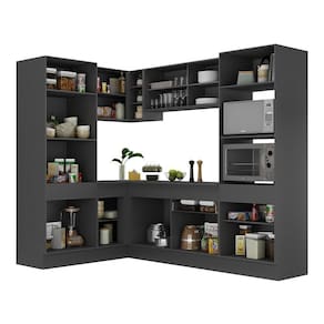 Armário De Cozinha Completa De Canto Com Rodapé Veneza Multimóveis Mp2084.898 Preto/branco
