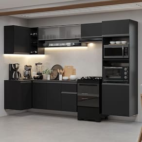 O acabamento de alta resistência no tom preto garante um visual moderno e sofisticado à cozinha.