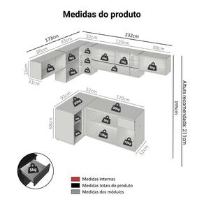 - 52 cm de profundidade nos balcões e 31 cm nos aéreos