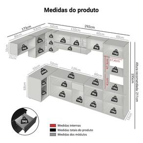 - 52 cm de profundidade nos balcões/torre quente e 31 cm nos aéreos