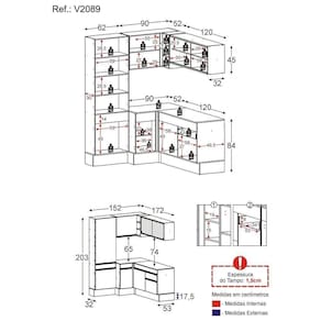 O Armário de Cozinha Completa de Canto com Rodapé Veneza Multimóveis V2089 tem um excelente custo benefício e um amplo espaço interno. Produzido em MDP com acabamento acetinado (cerca de 20% de brilho), que garante maior durabilidade e resistência, possui corrediças metálicas (mais leveza no manuseio), rodapés, que deixam o ambiente mais estiloso, puxadores em ABS e tampo em MDP 15mm com pintura de alta resistência. Os módulos de canto podem ser montados dos dois lados (esquerdo ou direito), conforme a sua preferência. Esta cozinha conta, ainda, com balcão com tampo removível (compatível com pia de 120 cm), com 1 gaveta e 2 portas. Os módulos são individuais e você pode montar da maneira que se adaptar melhor ao seu ambiente. Para deixar sua cozinha mais bonita e organizada, possui vidro reflecta e compartimento especial para utensílios mais altos.Conteúdo da Embalagem:1 (um) paneleiro 62cm1 (um) armário aéreo de canto 90cm1 (um) armário aéreo com portas de vidro 120cm1 (um) balcão com tampo de canto 90cm1 (um) balcão com tampo 120cm1 (um) kit com rodapés Dimensões do produto montado:Altura: 203cm | Largura: 152 x 172cm | Profundidade: 32cm (aéreos e paneleiro) - 53cm (balcão com tampo)*Você pode consultar as medidas internas na imagem técnica do produto.*As cores do produto podem sofrer variações de tonalidade de acordo com as configurações do seu dispositivo.Imagem meramente ilustrativa. Decoração e eletros não acompanham o produto.O produto será entregue desmontado e não disponibilizamos o serviço de montagem. Acabamento: Pintura Acetinada Texturizada | Cor: Preto/Dourado | Tonalidade: Preto | Material: MDP | Referência do Modelo: V2089 | Coleção: Veneza | Instruções de Cuidado: Limpar com pano seco para retirar o pó. Não utilizar lustra móveis e produtos químicos ou abrasivos à limpeza. | Sistema de Montagem: O produto acompanha manual de montagem e kit ferragem. O produto será entregue desmontado e não disponibilizamos o serviço de montagem. | Produto Composto por: 1 paneleiro 62cm, 1 armário aéreo de canto 90cm, 1 armário aéreo com portas de vidro 120cm, 1 balcão com tampo de canto 90cm, 1 balcão com tampo 120cm, 1 kit com rodapés, manual de montagem e kit ferragem. | Altura Montado: 203 | Largura Montado: 152 | Profundidade Montado: 172 | Tamanho (L x A x P): 152 x 203 x 172 | Peso do Produto: 140 | Garantia do Fabricante: 3 | Fabricante: Multimóveis | Requer Montagem: Sim | Quantidade de Portas: 8 | Quantidade de Gavetas: 1 | Quantidade de Prateleiras: 9 | Quantidade de Puxadores: 7 | Quantidade de Pés: 13 | Porta com Vidro: Sim | Corrediça: Metálica | Material do Puxador: ABS | Material dos Pés: Polipropileno | Acompanha Pia Inox: Não | Balcão 120 cm compatível para uso de pia: Sim | Tampo Incluso: Sim | Quantidade de Tampos: 2 | Material do Tampo: MDP | Espessura do Tampo: 1.5 | Com Prateleiras: Sim | Produto: Cozinha Completa | Tipo: Modular | Altura (cm): 203 cm | Largura (cm): 152 cm | Profundidade (cm): 172 cm | Estado de Origem: RS | Produto precisa de Montagem?: Sim, sugerimos a contratação do nosso serviço de montagem (para os CEPs em que o serviço está disponível) ou de algum profissional experiente de sua preferência | Ubicação do móvel: Não aplica | Altura do Produto com Embalagem: 90 | Largura do Produto com Embalagem: 66 | Comprimento do Produto com Embalagem: 189 | Peso do Produto com Embalagem: 140 | Nome do Produto no Fornecedor: Armário de Cozinha Completa de Canto com Rodapé Veneza Multimóveis V2089 Preto/Dourado | Descrição do Tamanho: (L x A X P): 152 x 203 x 172 cm | Tempo de Garantia: 3 meses | Destaque 1: MDP com acabamento acetinado: maior durabilidade e resistência. | Destaque 2: Balcão com tampo removível: pode ser utilizado com pia. | Destaque 3: Gavetas com corrediças metálicas: mais leveza no manuseio. | Destaque 4: Tamanho do Produto Montado (L x A X P): 152 x 203 x 172 cm | Destaque 5: Os módulos são individuais e você pode montar da maneira que se adaptar melhor ao seu ambiente. Garantia de 90 dias contra defeitos de fabricação. | Marca: Multimóveis | Acessórios incluídos: N/A Cor: Branco