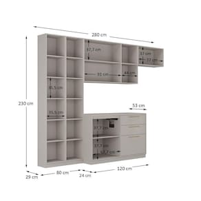 Linha: Essence | Cor: Fendi | Setor: Madeira | Situação do Produto Enviado: e desmontado na caixa | Acompanha Manual de Instalação: Sim | Recomendações Montagem: Seguir orientação de montagem conforme manual que vai junto ao produto e fixá-lo na parede | Recomendações de Uso, Manutenção e Limpeza: Pano levemente umedecido com sabão neutro | Garantia: 6 Meses | Material predominante: Madeira MDF | Altura: 230 cm | Profundidade: 53 cm | Largura: 280 cm | Pode vender individualmente?: Sim | Complexidade da montagem: Alta | Necessita Montagem: Sim | Montagem e Montador: Não Inclusos | Tipo de móvel de cozinha: Armário/Balcão