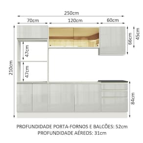 - 52 cm de profundidade nos módulos inferiores e 31 cm nos aéreos