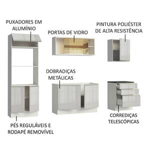 Feita em 100% MDF, possui ferragens de qualidade como puxadores em alumínio, dobradiças metálicas, corrediças telescópicas. Além disso, conta com aéreo em vidro reflex, detalhe que traz muita sofisticação.