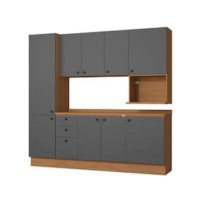Acabamento: 100% BP / Pintura Touch | Cor: Canela/Cinza Sagrado | Corrediças: Telescópicas | Dobradiça: Com Amortecimento | Garantia: 3 meses para defeito de fabricação | Matéria-prima: MDP / MDP BP | Peso suportado por cada gaveta: 6 Kg | Peso suportado por cada prateleira: 7 kg | Puxadores: Metálicos | Quantidade de gavetas: 3 | Quantidade de portas: 1 / 2 / 3 | Quantidade de prateleiras: 1 / 2 / 6 | Sistema de montagem: Parafuso Philips / Parafuso Philips e Minifix / Sistema Philips e Allen | Tipo de porta: Bater | Duração da garantia: 3 meses | Tipo de garantia: Garantia do fabricante | Montagem: Necessita montagem | Tipo de móveis de cozinha: Combo de móveis de cozinha | Requer montagem: Sim