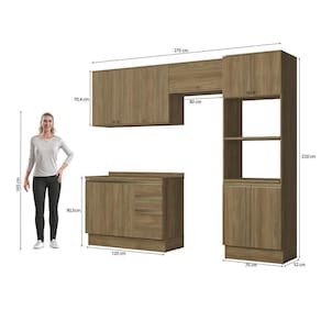 Remetendo aos tons da natureza, você terá o espaço ideal para armazenar seus itens e preparar receitas com praticidade. Completo e versátil, perfeito para todos os espaços, o combo une o balcão de pia, kit forno e microondas, além do aéreo de pia e o basculante, que juntos, irão transformar seu ambiente e garantir ainda mais praticidade na organização e preparo de receitas.