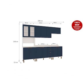 - A será realizada até a porta de entrada ou portaria do informado. Caso autorizado pela portaria, o produto será deixado no andar térreo. O até o interior do imóvel é responsabilidade do cliente. Cor: Azul/Branco | Estado de Origem: Rio Grande do Sul | Peso Produto Com Embalagem (Kg): 145kg | Garantia em Meses: 3 meses | Nome do Simples no Fornecedor: Genialflex | Comprimento Produto Com Embalagem (cm): 52,5 CM | Altura do Produto com Embalagem (cm): 6cm | Largura Produto Com Embalagem (cm): 80 | Material para Filtro: MDF | Largura do Produto (cm): 80 | Peso do Produto (Kg): 137 KG | Comprimento do Produto (cm): 52,5 CM | Tipo de móveis de cozinha: Cozinha completa | Altura do Produto: 230cm | Descrição do Tamanho: Grande | Is Fragile: true | do modelo: | Baterias são necessárias?: false | da peça: 17 | de caixas: 17 | Componentes incluídos: Racks | Fabricante: Genialflex | Quantidade de itens: 17 | Certificação de teste externa: NÃO | Principais Características do Produto (bullet_point#2): Pistão com amortecimento | Principais Características do Produto (bullet_point#0): 100% MDF | Exige montagem: true | Principais Características do Produto (bullet_point#1): Dobradiça Metálica | Peso do pacote: unit=kilograms;value=145 | Dimensões do item P x L x A: width#value=280;depth#unit=centimeters;height#value=230;height#unit=centimeters;depth#value=52;width#unit=centimeters | Requer Montagem: sim | Peso do item: value=16;unit=kilograms | Inclui manual de montagem: Sim