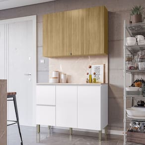 Com o Armário de Cozinha CP01 e Tampo 120cm Minsk K02 Branco/Freijó, da Mpozenato, sua casa fica mais bonita, organizada e cheia de estilo!