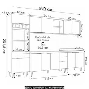Balcão 148cm: 148 x 81 x 50,5 cm.