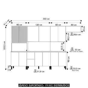 Conteúdo da Embalagem: 1 Paneleiro, 1 Armário Aéreo 120cm, 1 Armário Aéreo 80cm, 1 Armário Aéreo Basculante, 1 Balcão 120cm, 1 Balcão 80cm Com Tampo, 1 Tampo 120cm.