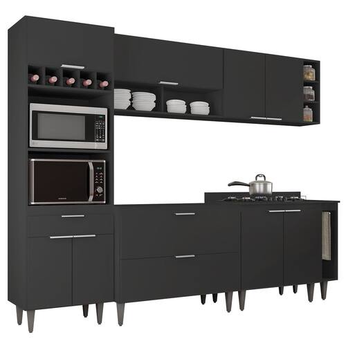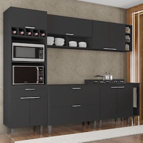 Conteúdo da Embalagem: 1 Armário Aéreo 100cm, 1 Armário Aéreo 80cm, 1 Balcão 98cm, 1 Balcão 80cm, 1 Balcão Porta Pano, 1 Paneleiro, 1 Nicho Adega.