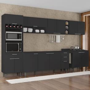 Conteúdo da Embalagem: 1 Armário Aéreo 100cm, 2 Armários Aéreos 80cm, 1 Balcão 178cm, 1 Balcão 80cm, 1 Balcão Porta Pano, 1 Paneleiro, 1 Nicho Adega.