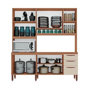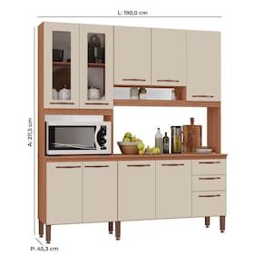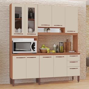 Armário de Cozinha Dáfine 100% MDF Tuboarte 9 Portas e 3 Gavetas - Bege Claro
