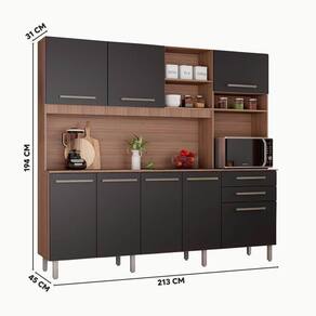 Dimensões do produto: Largura 213 cm; Profundidade Superior 31 cm; Profundidade Inferior 45 cm; Altura 194 cm.