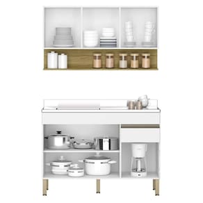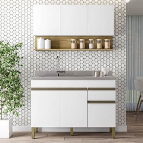Você quer renovar a sua Cozinha deixando mais moderna e funcional? Então conheça o Armário de Cozinha e Balcão com Pia 120cm Lina Z06 Supremo/Freijó, da Mpozenato!