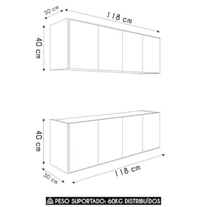 O Armário Aéreo e Balcão Suspenso para Cozinha é a solução perfeita para quem busca versatilidade e organização sem comprometer o estilo. Com 118cm de largura cada, esses dois móveis oferecem um amplo espaço interno, ideal para armazenar utensílios, mantimentos e outros itens essenciais da sua cozinha.
