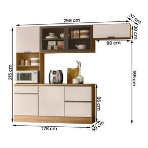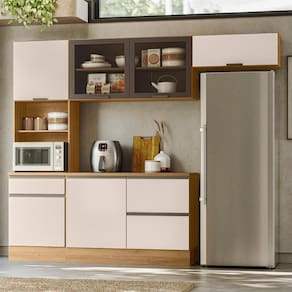 Produzida em MDP de alta qualidade, conta com 6 portas (incluindo uma basculante com pistão a gás) e 4 gavetas com corrediças telescópicas, garantindo praticidade no dia a dia.