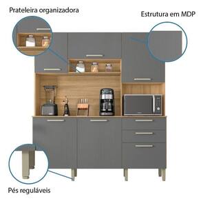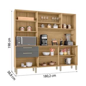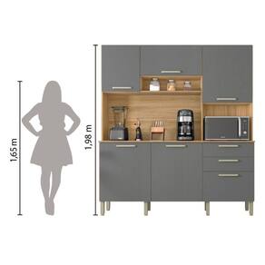 A Cozinha Ferrara traz a beleza que o seu ambiente precisa, foi pensada nos mínimos detalhes para atender as necessidades do dia a dia, mantendo a elegância da sua cozinha ou área gourmet, com 2 gavetas e Nichos com espaço para forno ou Micro-ondas. Além de possuir compartimentos internos que facilitam a organização e praticidade. Produzida com material de qualidade, garantindo a durabilidade do produto. MODELO: Armário de Cozinha Completa Ferrara 6 Portas 1 Gaveta MARCA: Kit's Paraná COR: Freijó / Grafite Medidas: [ A ] = 198 cm [ L ] = 180,2 cm [ P ] = 38,8 cm MATERIAL: MDP 15mm ACABAMENTO: Pintura fosca PORTAS: 6 portas GAVETAS: 2 gavetas PUXADORES: Plástico metalizado DOBRADIÇAS: Metálicas PÉS: Reguláveis PESO: 77,65 SUPORTA: 114kg GAVETAS SUPORTAM: 10kg PRATELEIRAS SUPORTAM: 5kg à 7kg SITEMA DE MONTAGEM: Pregos parafusos e cavilhas Montagem não inclusa. Entregamos até a porta de entrada da casa do cliente ou até a portaria do condomínio. MODELO:: Armário de Cozinha Completa Ferrara 6 Portas 1 Gaveta | MARCA:: Kit's Paraná | COR:: Freijó / Grafite | Medidas:: [ A ] = 198 cm [ L ] = 180,2 cm [ P ] = 38,8 cm | MATERIAL:: MDP 15mm | ACABAMENTO:: Pintura fosca | PORTAS:: 6 portas | GAVETAS:: 2 gavetas | PUXADORES:: Plástico metalizado | DOBRADIÇAS:: Metálicas | PÉS:: Reguláveis | PESO:: 77,65 | SUPORTA:: 114kg | GAVETAS SUPORTAM:: 10kg | PRATELEIRAS SUPORTAM:: 5kg à 7kg | SITEMA DE MONTAGEM:: Pregos parafusos e cavilhas | OBS:: Montagem não inclusa. Entregamos até a porta de entrada da casa do cliente ou até a portaria do condomínio. | PRODUTO: Armário de Cozinha Cor: Freijo Cinza