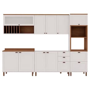 Imagine entrar na sua cozinha todos os dias e se deparar com esse charme em forma de móvel! A Cozinha Genialflex Iluminata Luna Branca combina design provençal com um toque moderno que transforma o ambiente num espaço leve, acolhedor e cheio de personalidade. Produzida 100% em MDF, ela traz portas com moldura no estilo americano, puxadores e pés em ABS cor champanhe, corrediças telescópicas e dobradiças metálicas com amortecimento ou seja, beleza e qualidade que você sente no dia a dia. Os detalhes amadeirados dão aquele contraste elegante, o tampo é espaçoso e o nicho para forno e micro-ondas deixa tudo prático e funcional. É a escolha perfeita pra quem quer unir estilo, resistência e praticidade em um só móvel, e viver o prazer de ter uma cozinha linda de verdade!