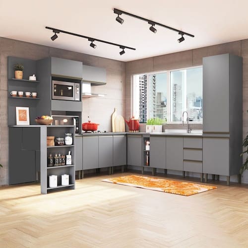 O(a) Armário de Cozinha Hermínia 13 Portas 3 Gavetas Cinza - Pnr Móveis é produzido em MDP na escala de brilho Semi-Brilho, e possui um grau de dificuldade de montagem: Médio.