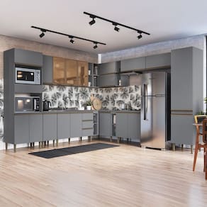 O(a) Armário de Cozinha Hermínia 20 Portas 3 Gavetas Cinza - Pnr Móveis é produzido em MDP na escala de brilho Semi-Brilho, e possui um grau de dificuldade de montagem: Médio.