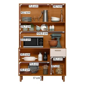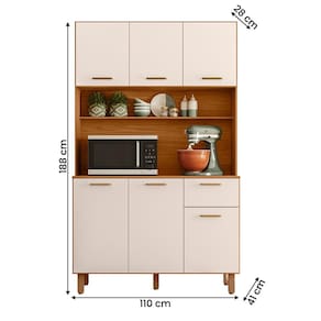 Produzida em MDP resistente, possui pés com regulagem e amplo espaço para micro-ondas e utensílios.