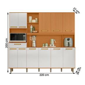 Com estrutura resistente em MDP, 11 portas e 1 gaveta com corrediças telescópicas, ele oferece amplo espaço para guardar utensílios e mantimentos.