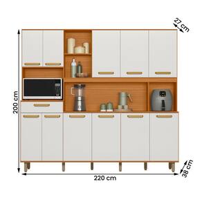 Com estrutura resistente em MDP, 11 portas e 1 gaveta com corrediças telescópicas, ele oferece amplo espaço para guardar utensílios e mantimentos.