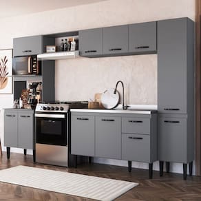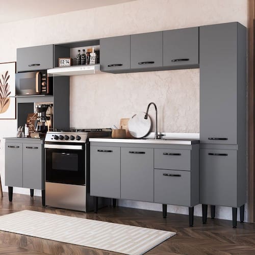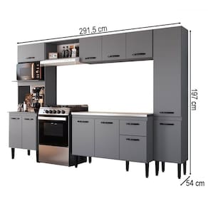 O(a) Armário de Cozinha Laís 11 Portas 1 Gaveta Cinza - Pnr Móveis é produzido em MDP na escala de brilho Semi-Fosco, e possui um grau de dificuldade de montagem: Médio.