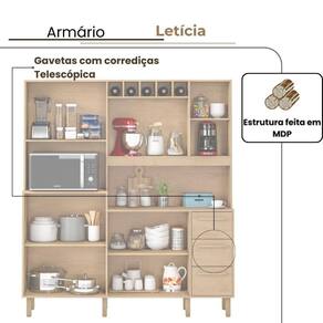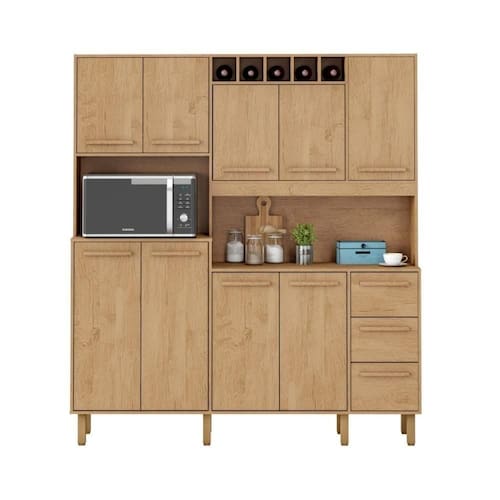 Vantagens do Armário LetíciaEspaço de sobra: com 9 portas, você consegue guardar louças, panelas, mantimentos e utensílios de forma organizada.