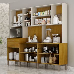 O Armário de Cozinha Plus 9 Portas 2 Gavetas com Nicho e Espaço para Micro-ondas Lira é a solução ideal para quem busca organização e praticidade sem abrir mão do estilo. Com nove portas e duas gavetas, ele oferece amplo espaço para armazenar louças, panelas, mantimentos e utensílios, garantindo tudo sempre acessível. O espaço dedicado para micro-ondas otimiza o ambiente, tornando o uso do eletrodoméstico mais prático no dia a dia, enquanto o nicho aberto pode ser utilizado para itens decorativos ou de uso frequente. Seu design moderno combina com diferentes estilos de cozinha, criando um ambiente funcional e bem distribuído.