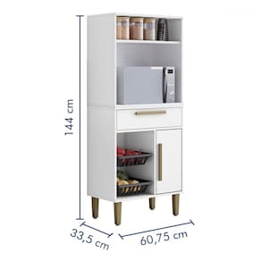 O(a) Armário de Cozinha Lorena 1 Porta 1 Gaveta com Fruteira Branco - Kaiki Móveis é produzido em MDP na escala de brilho Fosco, e possui um grau de dificuldade de montagem: Médio.