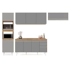 Confira o Armário de Cozinha Modulada 4 Peças CP11 Balcão com Tampo Castanho/Cinza, da Lumil e torne a sua Cozinha muito mais bonita e aconchegante!