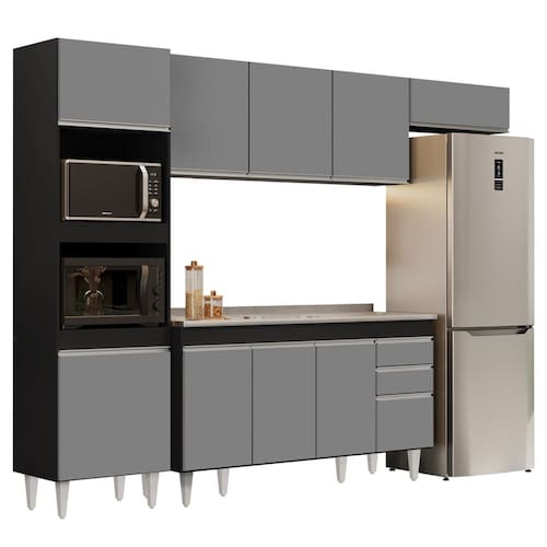 O Armário de Cozinha Modulada 4 Peças CP12 com Pia Inox Preto/Cinza, da Lumil é prático, funcional e vai dar um toque de modernidade na sua Cozinha, confira!