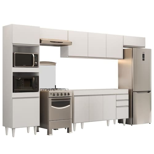 Conteúdo da Embalagem: 1 Balcão 150cm, 1 Armário Aéreo 150cm, 2 Armários Aéreos 70cm, 1 Paneleiro.