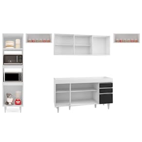Cor: BrancoPreto | ProductHeight: 202 | Material: MDP | Origem: | Model: CP13 | SupplierSimpleName: Armário de Cozinha Modulada 5 Peças CP13 Balcão BrancoPreto - Lumil