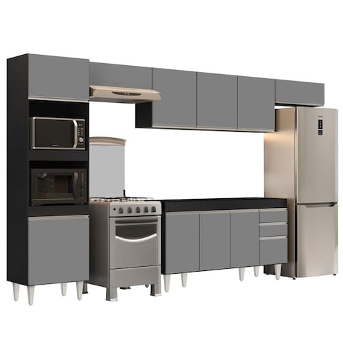 O Armário de Cozinha Modulada 5 Peças CP13 Balcão Preto/Cinza, da Lumil é uma ótima opção para quem busca praticidade e beleza na Cozinha, vem conhecer os detalhes!