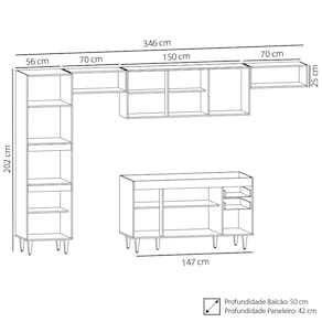 Conteúdo da Embalagem: 1 Balcão 150cm, 1 Armário Aéreo 150cm, 2 Armários Aéreos 70cm, 1 Paneleiro.