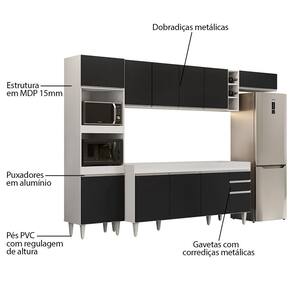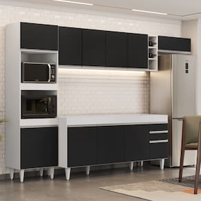 Com design moderno e elegante, o Armário de Cozinha Modulada 5 Peças CP16 Balcão Branco/Preto, da Lumil, vai facilitar a sua rotina e deixar tudo no devido lugar, confira os detalhes!