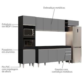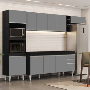 Com design moderno e elegante, o Armário de Cozinha Modulada 5 Peças CP16 Balcão Preto/Cinza, da Lumil, vai facilitar a sua rotina e deixar tudo no devido lugar, confira os detalhes!