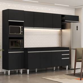 Com design moderno e elegante, o Armário de Cozinha Modulada 5 Peças CP16 Balcão Preto, da Lumil, vai facilitar a sua rotina e deixar tudo no devido lugar, confira os detalhes!