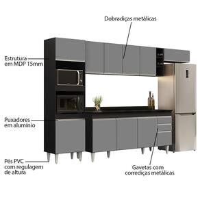 Em um cômodo que exige funcionalidade, o Armário de Cozinha Modulada 5 Peças CP17 Balcão com Tampo Preto/Cinza, da Lumil, é a escolha perfeita para manter tudo no devido lugar, vem conhecer os detalhes!